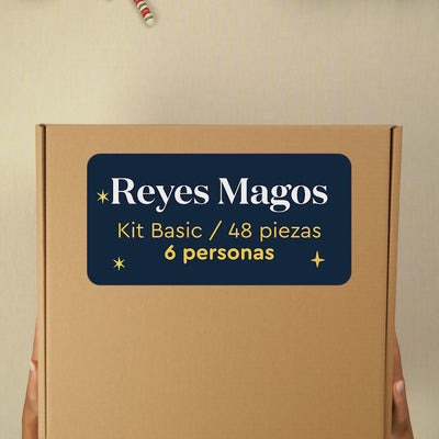 Kit Vajilla Reyes Magos para 6 personas, compuesto por un total de 48 piezas.