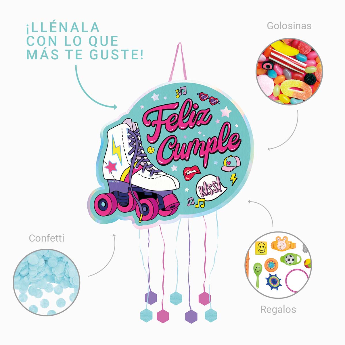Piñata con dibujo de patín de 4 ruedas. Las piñatas son un acierto en todo tipo de fiestas, especialmente si tienen un diseño tan divertido como este.