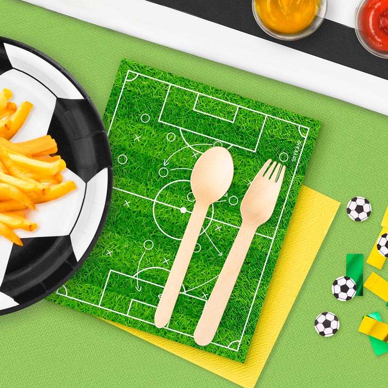 Pack de 20 servilletas de doble capa de 40 x 33 cm en forma de campo de fútbol.