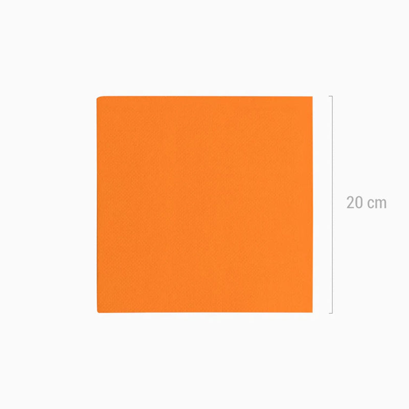 Pack de 50 servilletas de papel doble capa punta a punta 40 x 40 cm color naranja.