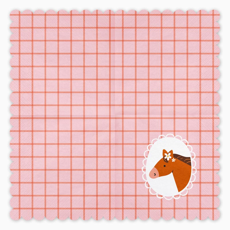 Pack 12 servilletas 33 x 33 cm de papel con estampado vichy y dibujo de caballo.