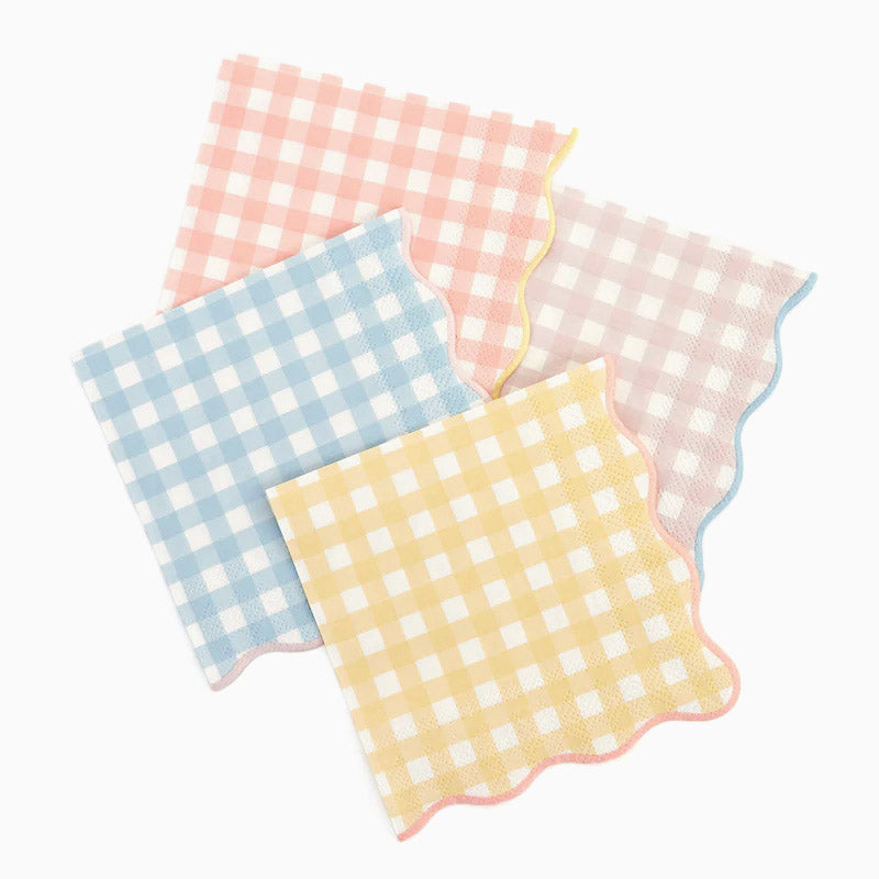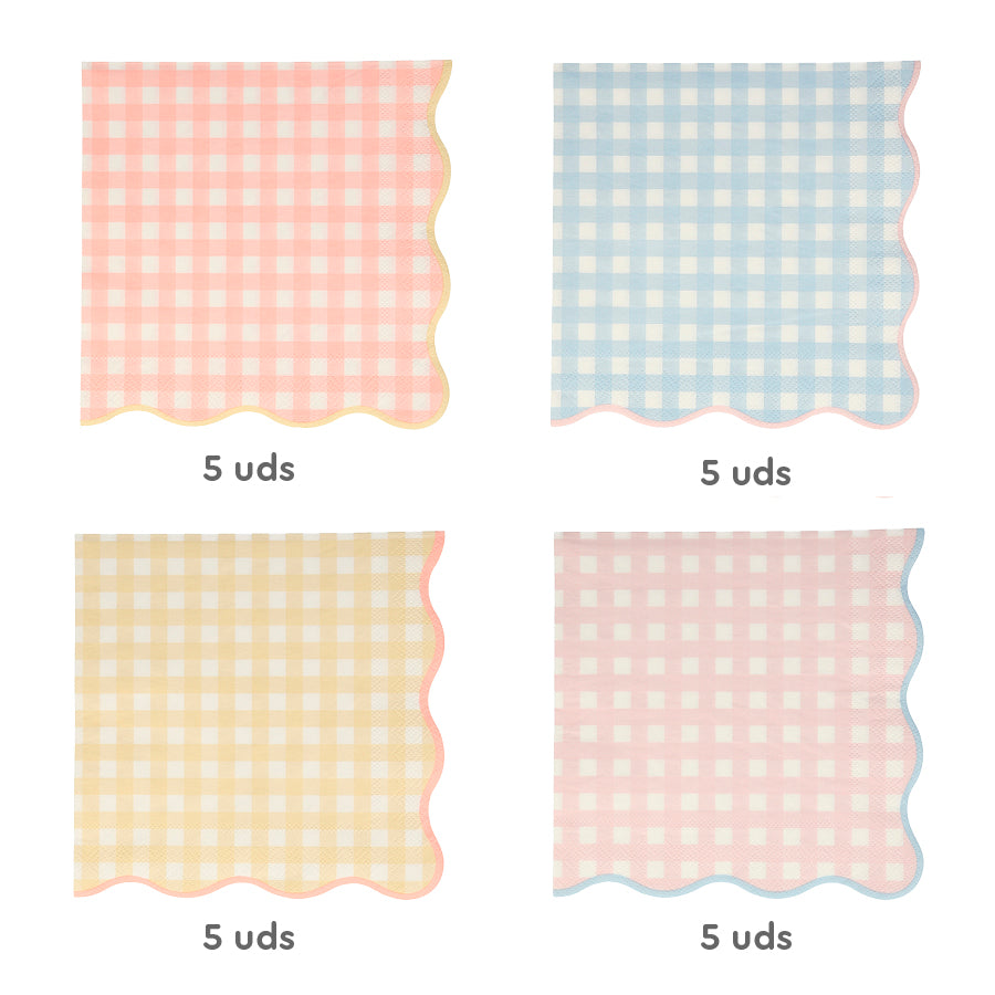 ¡Pack de 20 servilletas de papel en colores pastel y estampado vichy!