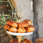 Estos toppers están hechos de cartón resistente en colores dorado y azul. Está pensado para que lo claves en tu cupcake o pastel sin problemas y luego lo puedas limpiar y guardar para volverlo a usar.