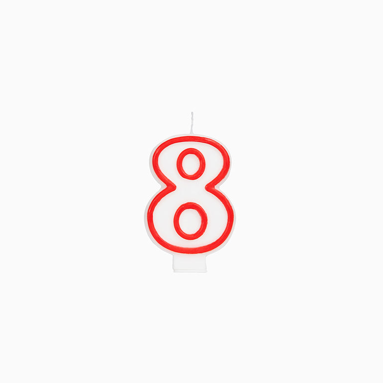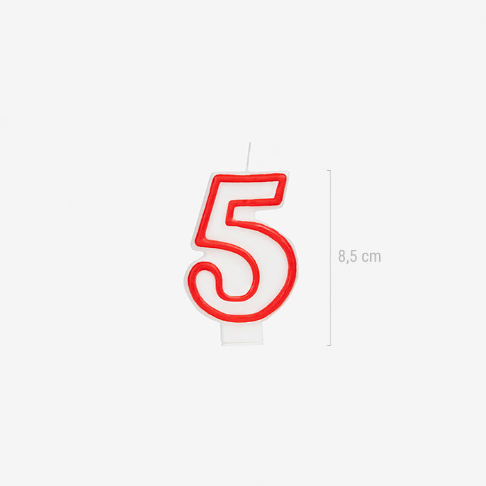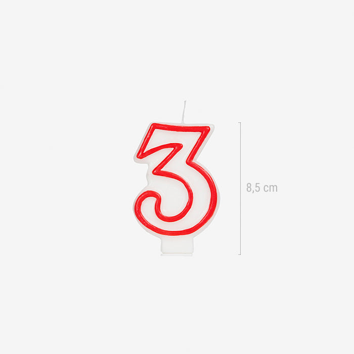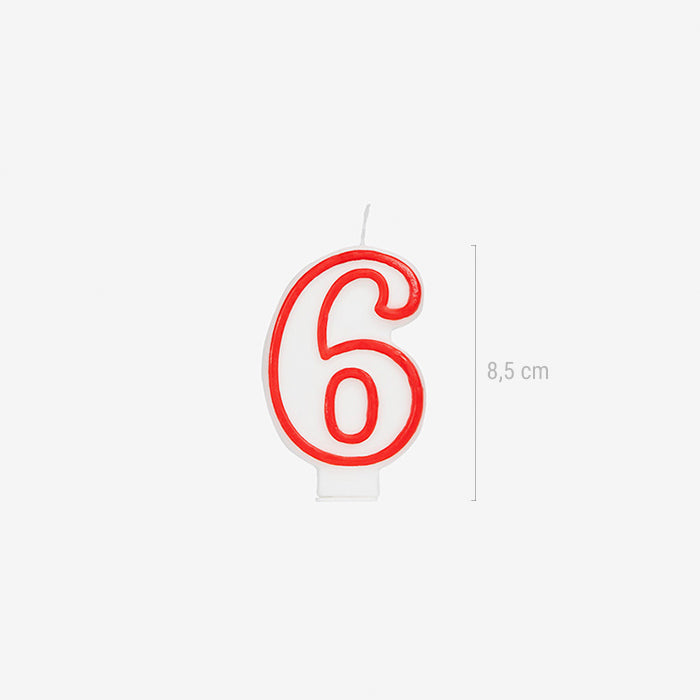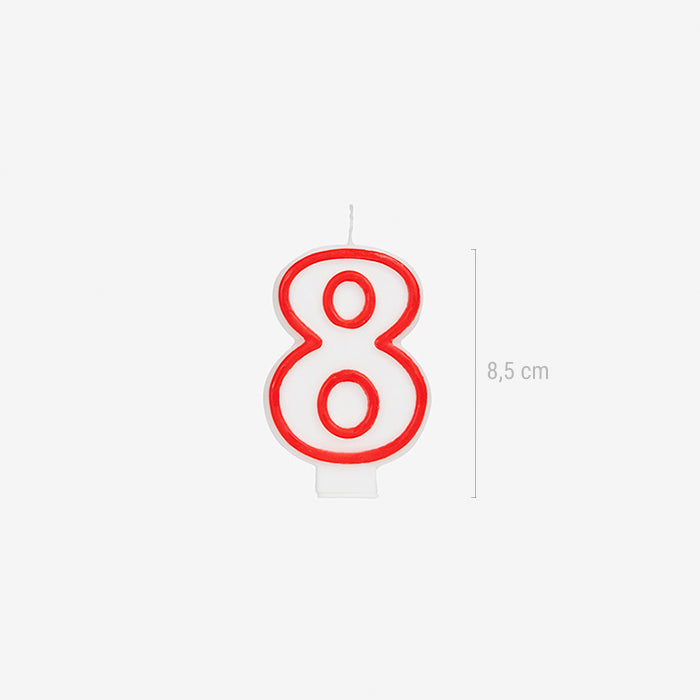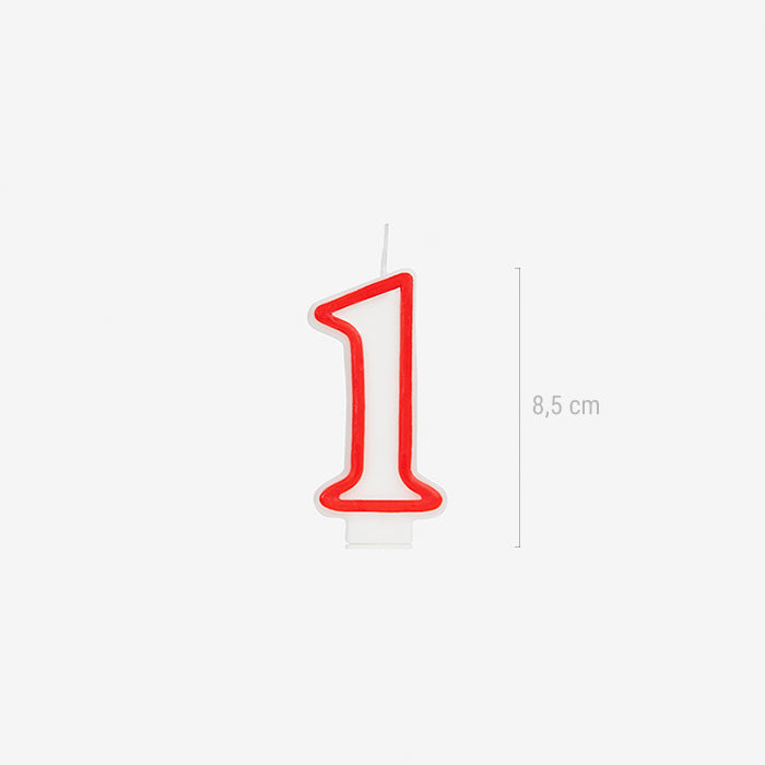 🎉 El paquete incluye 1 vela en forma de número en color blanco con borde rojo, con un diseño elegante que aporta un toque especial a tus celebraciones. 🕯️✨ Mide 8.5 cm de altura y está diseñada para colocarse fácilmente sobre el pastel. 🎂❤️