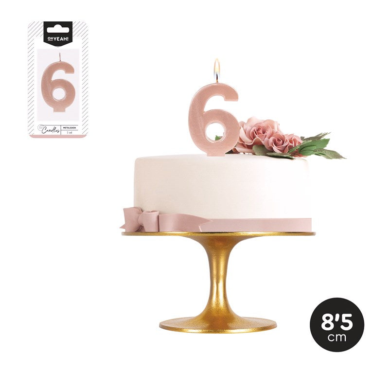 🎉 El paquete incluye una vela en forma de número metalizado en color oro rosa, con un diseño elegante que añade un toque especial a tus celebraciones. 🕯️ Mide 8.5 cm de altura y está diseñada para colocarse fácilmente sobre el pastel. 🎂✨