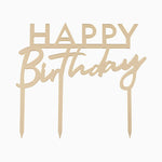 Topper “Feliz Aniversário” em madeira 16,5 cm. Perfeito para decorar seus bolos ou cupcakes mais elegantes em aniversários. Combine com os utensílios de mesa e elementos de decoração para completar a sua festa e fazer da sua comemoração uma festa inesquecível!